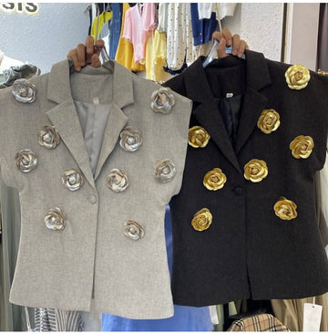 Our Blazer featuring a classic lapel with embellished 3D Flower Detailing is for sure a show...