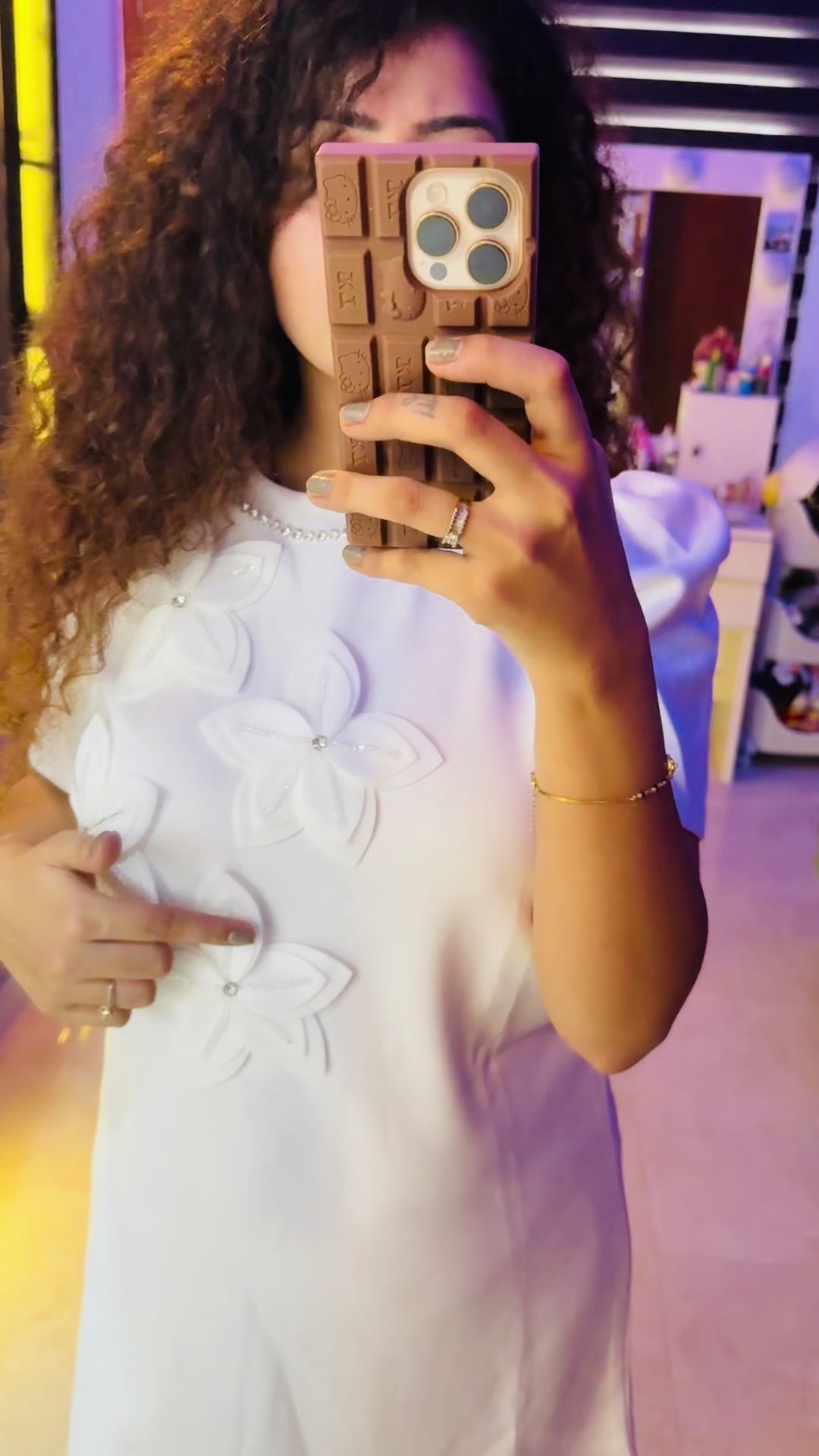 A stunning white mini dress adorned with delicate sequin flower motifs on the front. Its clean cut design, and structured fit create a graceful yet glamorous look. Perfect for brunches, parties, or evening events where you want to shine with effortless elegance.