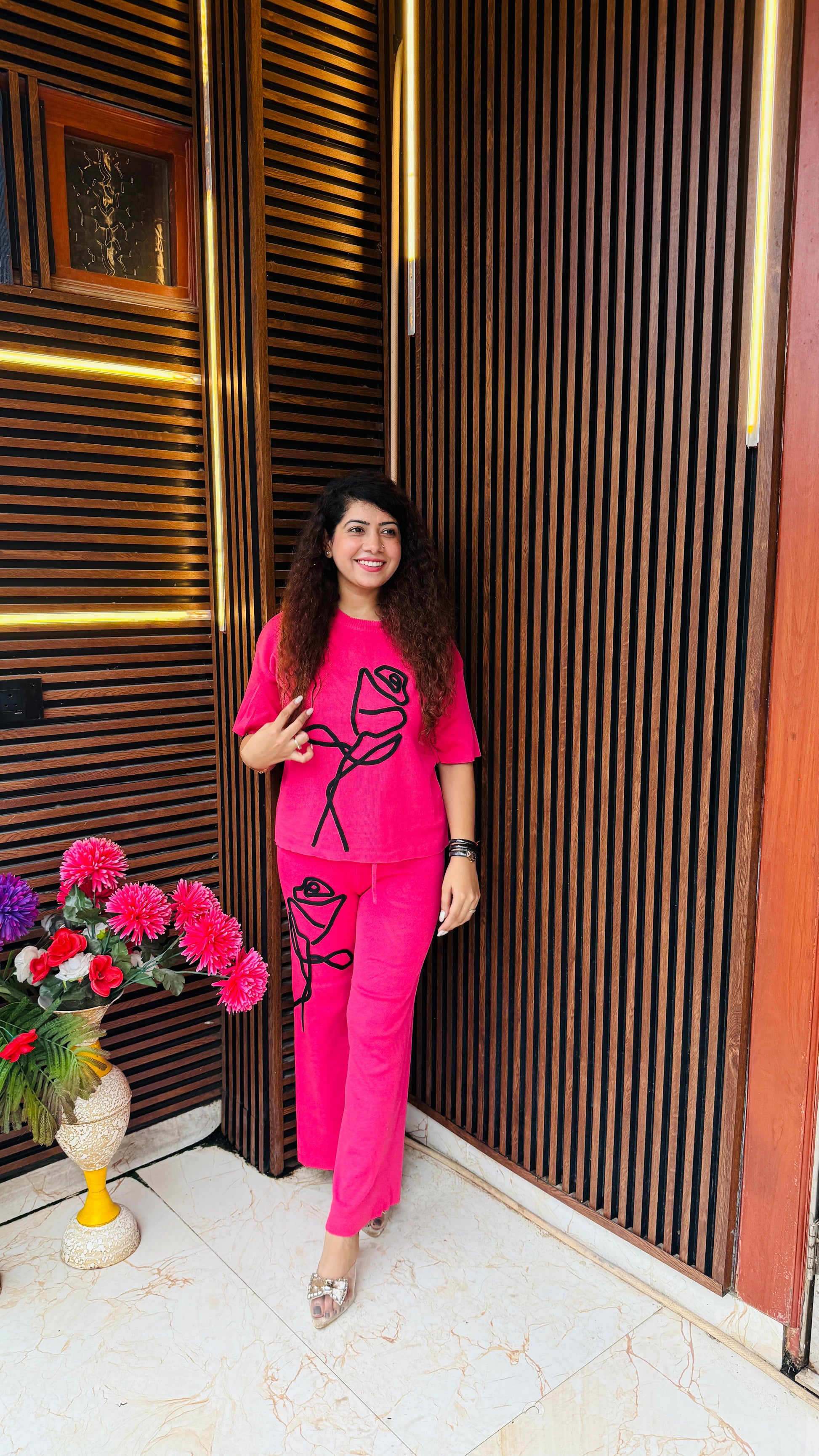 Brighten up your everyday look with our Lemon Sketch Co-ord Set. Featuring abstract black line art of roses on a vibrant yellow base, this comfy yet chic set is perfect for casual outings, travel, or lounging in style. The relaxed-fit top and straight pants offer both comfort and an artsy edge. Pair it with sliders or heels for a fun, easygoing look.