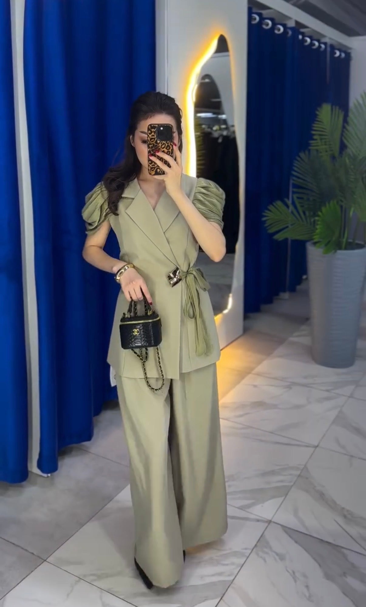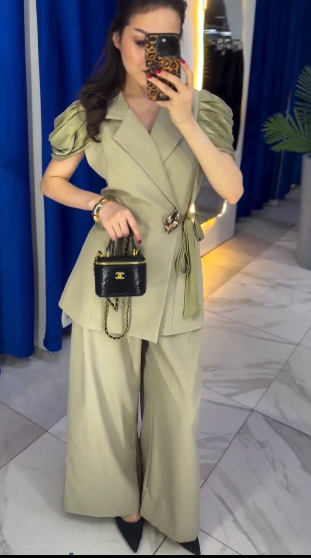 This statement Wrap Blazer Coord Set is designed for the modern woman who loves comfort with confidence. Featuring a structured blazer-style top with soft draped puff sleeves and a flattering wrap silhouette, it cinches beautifully at the waist with a statement buckle tie.