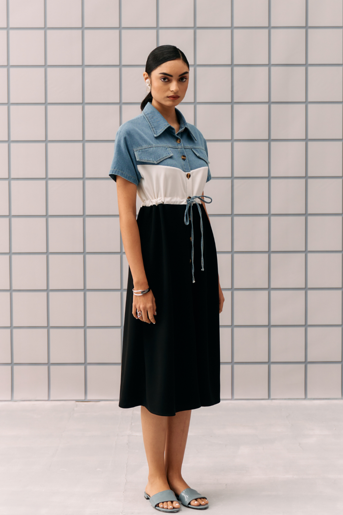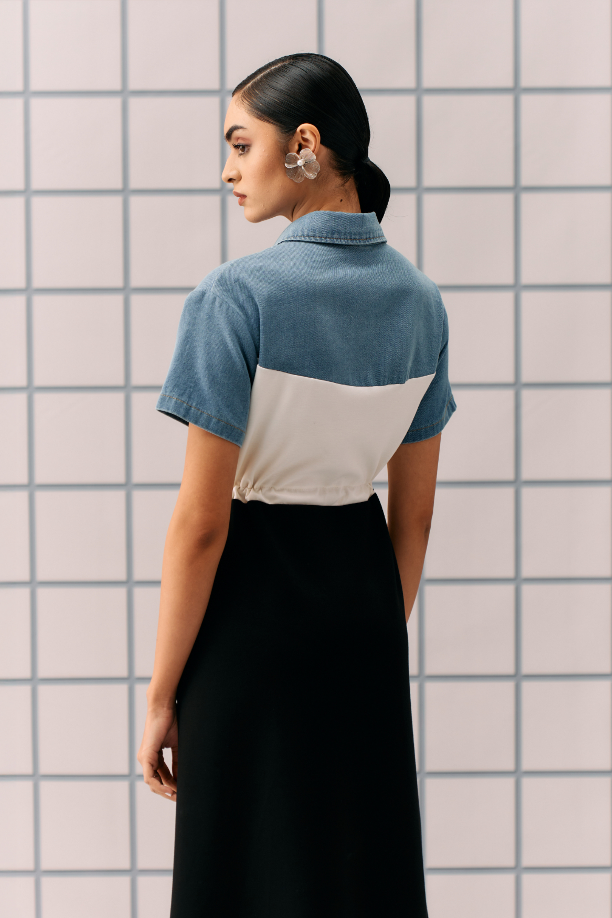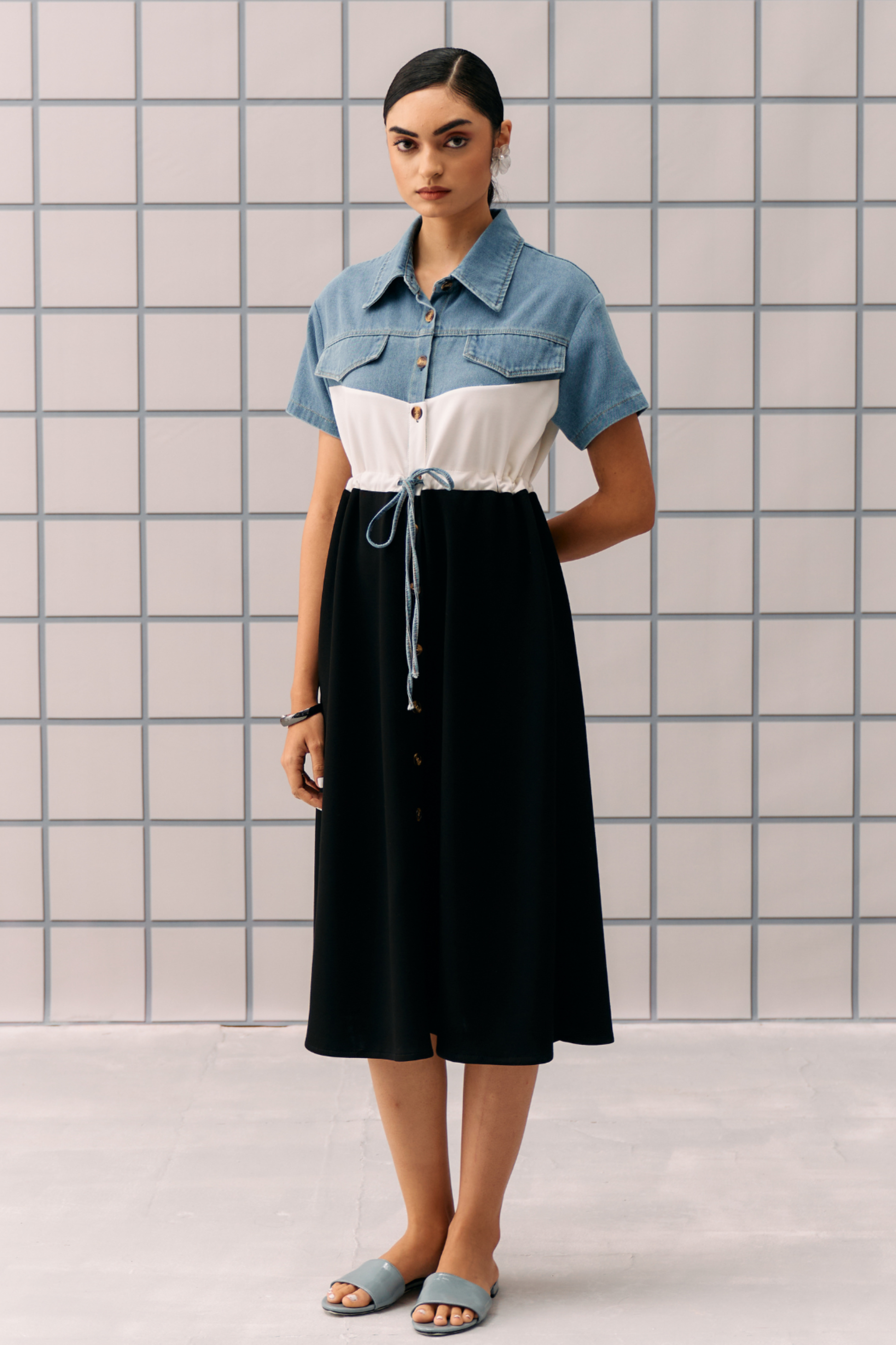 Turn heads with our Sporty Spice Denim Dress – a playful blend of sporty and street chic. Featuring a contrast half-zip collar, structured short sleeves, and a panelled design that effortlessly flatters. The soft denim skirt with side pocket accents adds utility and charm, making it perfect for casual outings or laid-back weekends. Comfort meets cool in this athleisure-inspired silhouette.